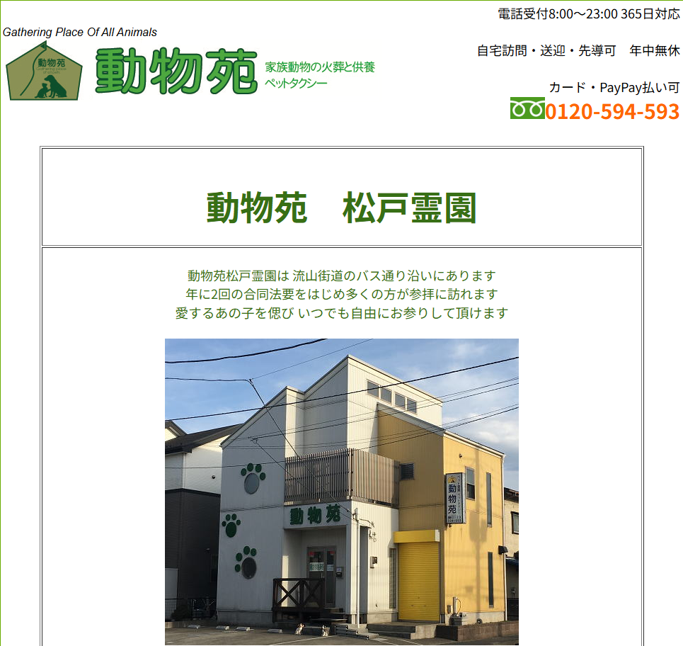 | 霊園名 | ペット霊園動物苑 松戸霊園 |